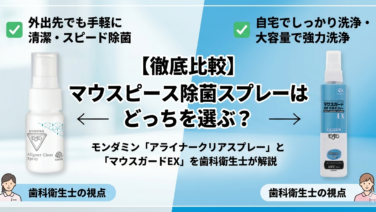 歯の健康【徹底比較】マウスピース除菌スプレーはどっちを選ぶ?モンダミン「アライナークリアスプレー」と「マウスガードEX」を歯科衛生士が解説 マウスピースやマウスガードの除菌はどれを選ぶ? モンダミン「アライナークリアスプレー」と「マウスガードEX」を歯科衛生士が徹底比較。違い・使い分け・おすすめの選び方を分かりやすく解説します。2026.02.02歯の健康