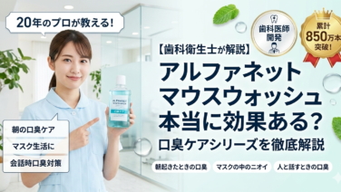 歯の健康【歯科衛生士が解説】アルファネットのマウスウォッシュは本当に効果ある?口臭ケアシリーズを徹底解説 口臭が気になる方に人気のアルファネットのマウスウォッシュ。歯科医師が開発し累計850万本以上販売されている口臭ケアシリーズの特徴やメリット・注意点を歯科衛生士がわかりやすく解説します。マウスウォッシュ選びで迷っている方はぜひ参考にしてください。2026.03.09歯の健康