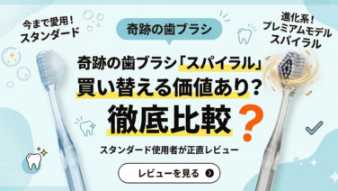 奇跡の歯ブラシのプレミアムモデル「スパイラル」をスタンダードユーザーが実際に購入・使用してレビュー。360度洗浄の清掃力や使い心地の違いを正直に解説。スタンダードから買い替えるべきか迷っている方は必見です。
