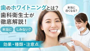 歯の健康歯のホワイトニングとは?効果・種類・注意点を歯科衛生士が徹底解説 歯のホワイトニングは本当に白くなる?効果・種類(ホーム・オフィス・デュアル)・料金相場・注意点を歯科衛生士がわかりやすく解説。後悔しない選び方も紹介します。2022.06.14歯の健康