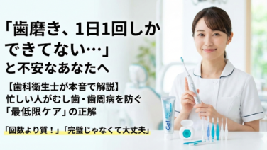 歯の健康【歯科衛生士が本音で解説】歯磨き1日1回でも大丈夫?忙しい人がむし歯・歯周病を防ぐ最低限ケア 忙しくて歯磨きは1日1回が限界…そんな人へ。認定歯科衛生士が「これだけは外さないで」と本気で伝えたい最低限の口腔ケアと、おすすめアイテムを実体験ベースで解説します。2026.01.27歯の健康
