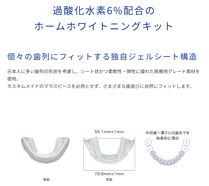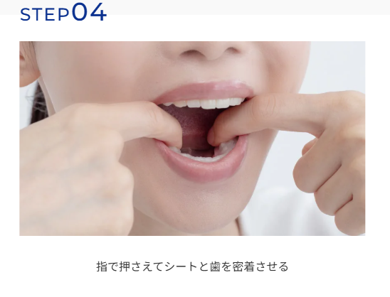 ジェルがあらかじめシートに練り込まれているため、歯にそのまま貼るだけ。
