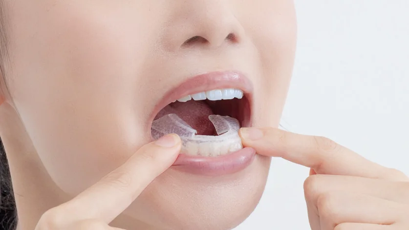 シートタイプなので、従来のマウスピース型より違和感が少なく、日常生活の中でも使いやすい設計です。