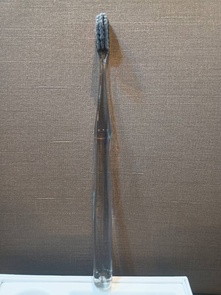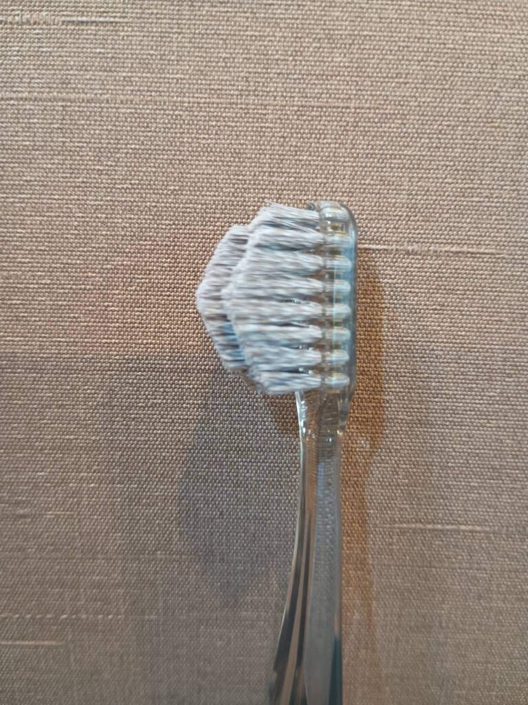そして毛先の色を見た瞬間、思わず「おしゃれ…」と声が出てしまいました。スタンダードの清潔感ある白一色に対し、スパイラルはグレーと白のツートンカラーでねじれた毛が美しく並んでいます。歯ブラシなのに、洗面台に並べて飾りたくなるほどの見た目のレベルアップです。