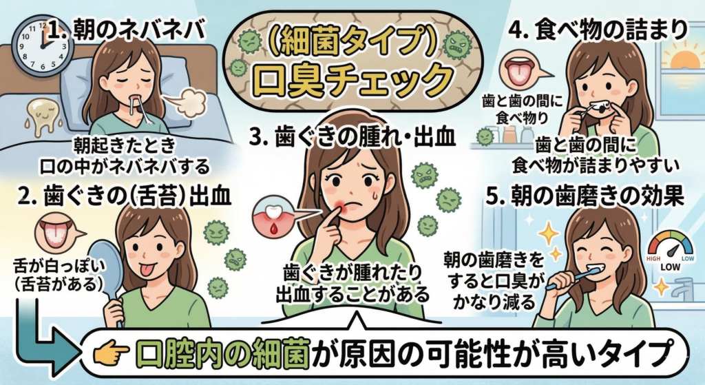 👉 口腔内の細菌が原因の可能性が高いタイプ