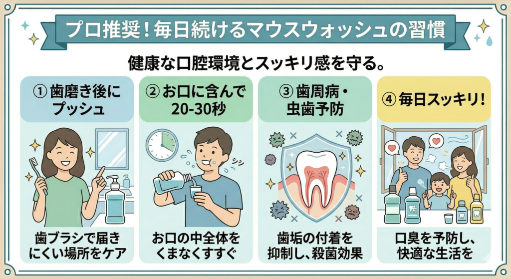 歯磨きと併用することで、口臭予防の効果が高まります。