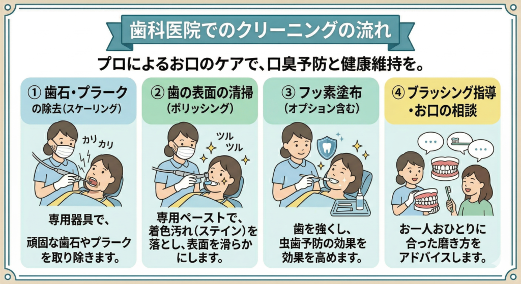 歯科医院での定期クリーニングは口臭予防にも重要です。