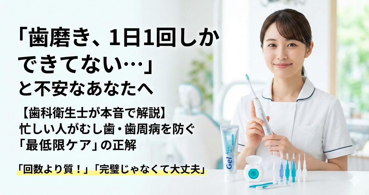 【歯科衛生士が本音で解説】歯磨き1日1回でも大丈夫?忙しい人がむし歯・歯周病を防ぐ最低限ケア